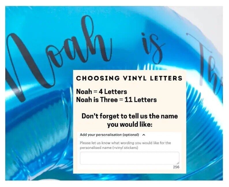 Optional: Black Vinyl Letter stickers with the wording of your choice. Please select the number of letters you require (eg for Emily is One you will need to choose 10 letters). The letters will be supplied individually.