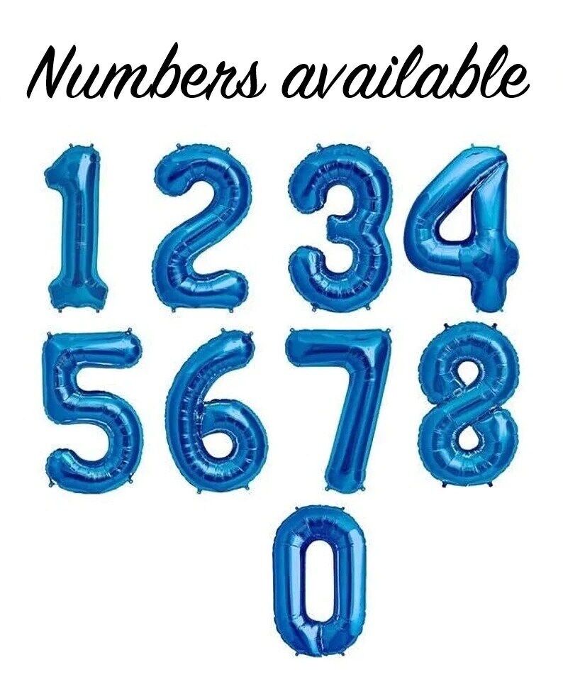 -1 x 34″ Giant Number Balloon in blue (numbers available are 1, 2, 3, 5, 6, 8, 0)