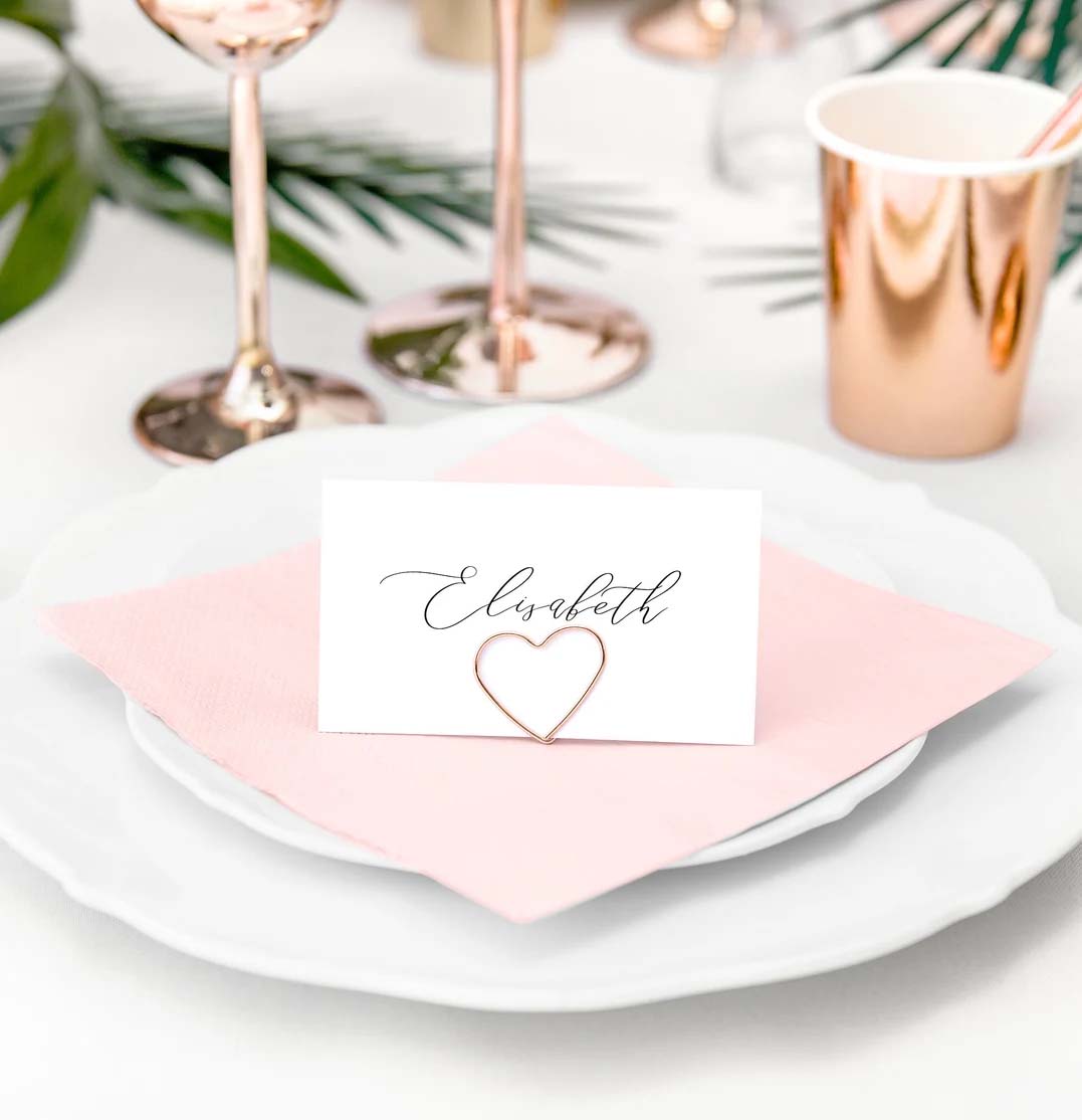 These Rose Gold Ring Drink Markers can be personalised with your guests’ names, and then simply drape around the glass stem so no one ever loses track of their drink!