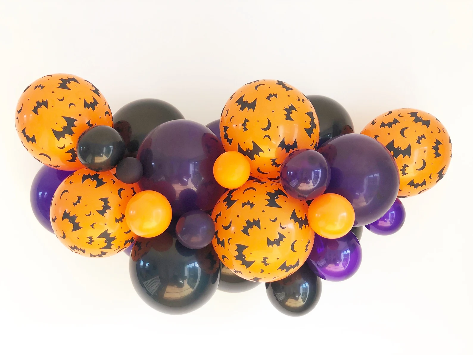 Have a great Halloween party with this fabulous balloon garland. The orange 11″ balloons have black bats printed them, which makes them the perfect decoration for your spooky party. The kids and adults will love it !