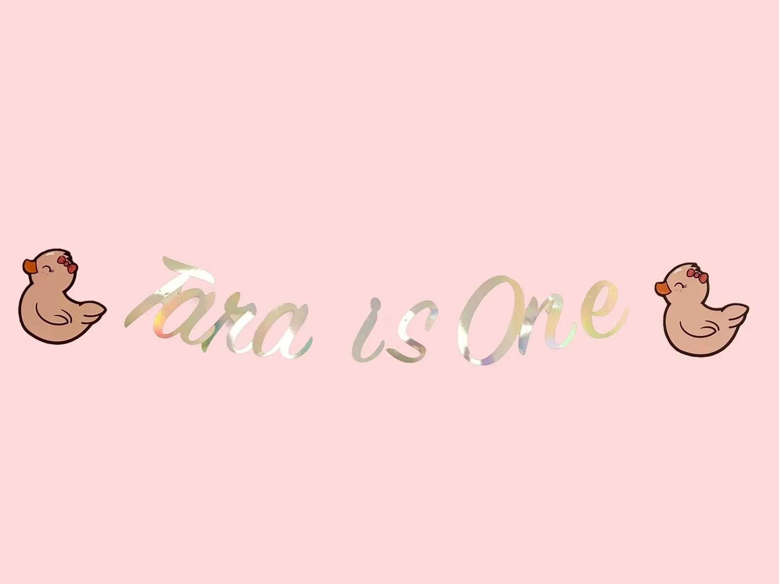 The banner is made of metallic iridescent card and is one-sided. Each letter has been cut out in a lovely handwritten style and will have 2 small puncture holes to thread onto the string.