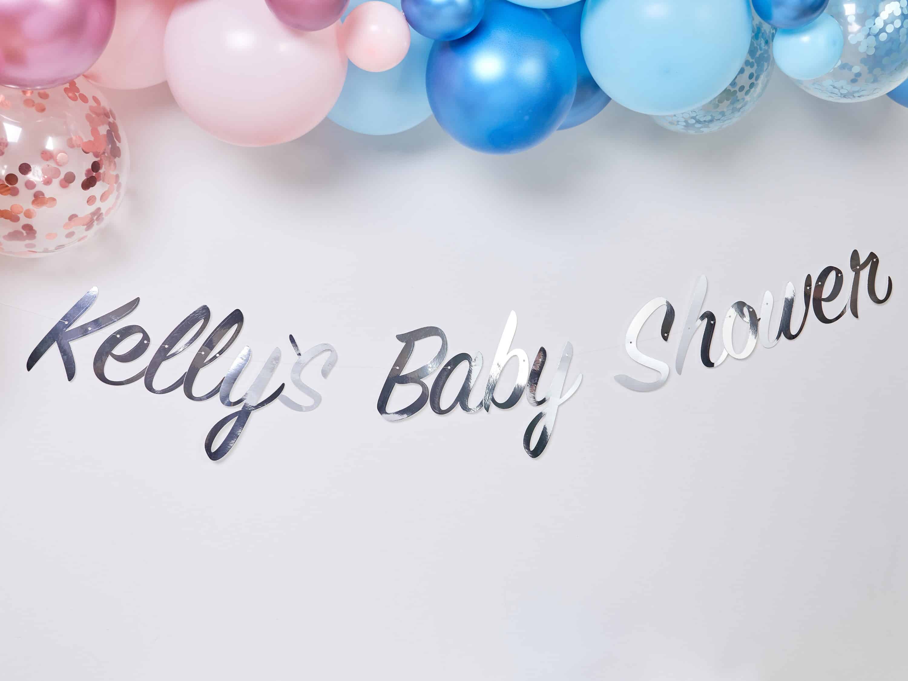 The set price includes ‘’s Baby Shower’ and then the letters you need for your personalised name are an additional £0.65 per letter. Select the number of letters needed when adding to your cart and write your personalisation details at checkout.