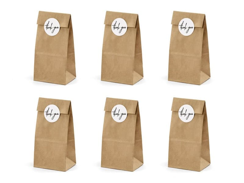 An inexpensive and lovely treat for you guests and these rustic bags make it look even more special. The bags are made of kraft paper and come with white stickers with ‘Thank you’ printed on them.