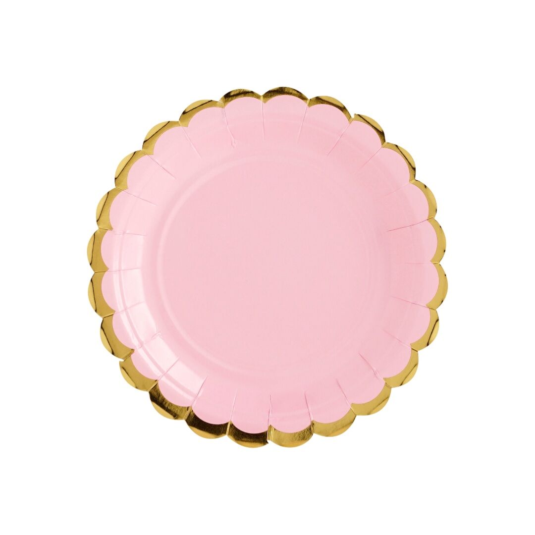 Pastel coloured party decorations are very on trend this year. These pink coloured paper plates feature gold scalloped edges and are the perfect addition for your pastel coloured party.
