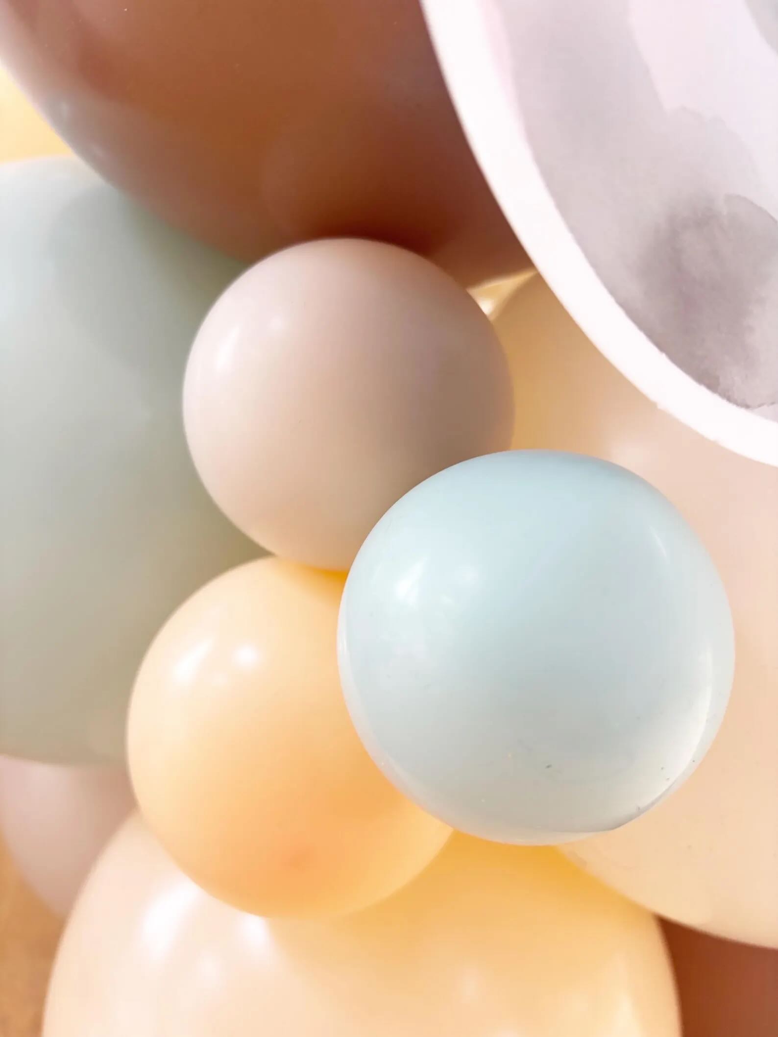 -6 x 5in balloons in mocha brown, willow, pastel peach, white sand