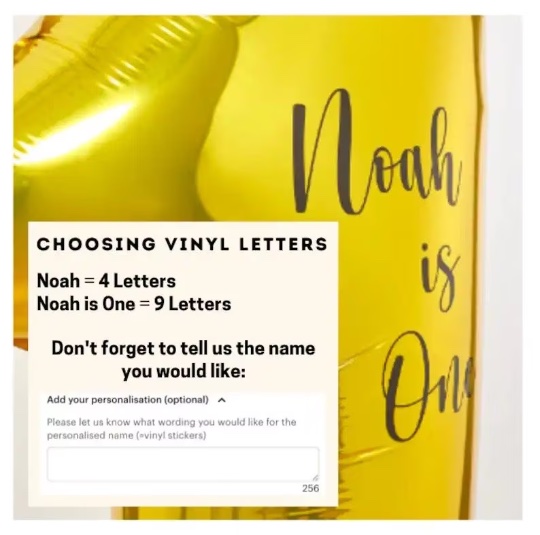 Optional: Black Vinyl Letter stickers with the wording of your choice. The letters will be supplied individually. You can choose wording up to 15 letters.