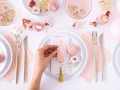The place cards are made of paper in pink colour with gold metallic print and a gold tassel.