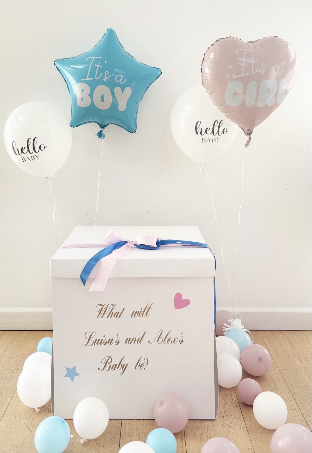 1 ‘It’s a boy’ or ‘It’s a girl’ foil balloon (you also have the option to choose both)