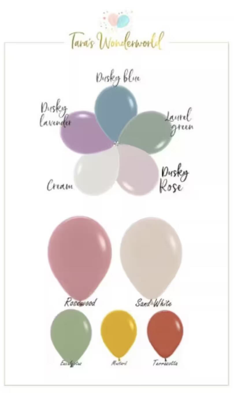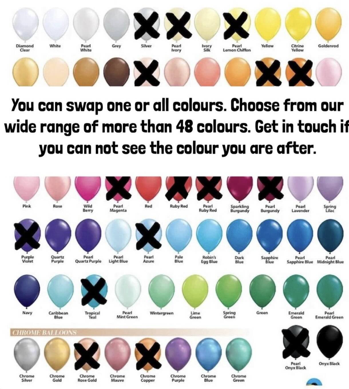-The 3m/10.5ft: 48 of 11″ and 24 of 5″ balloons + 5 cutouts