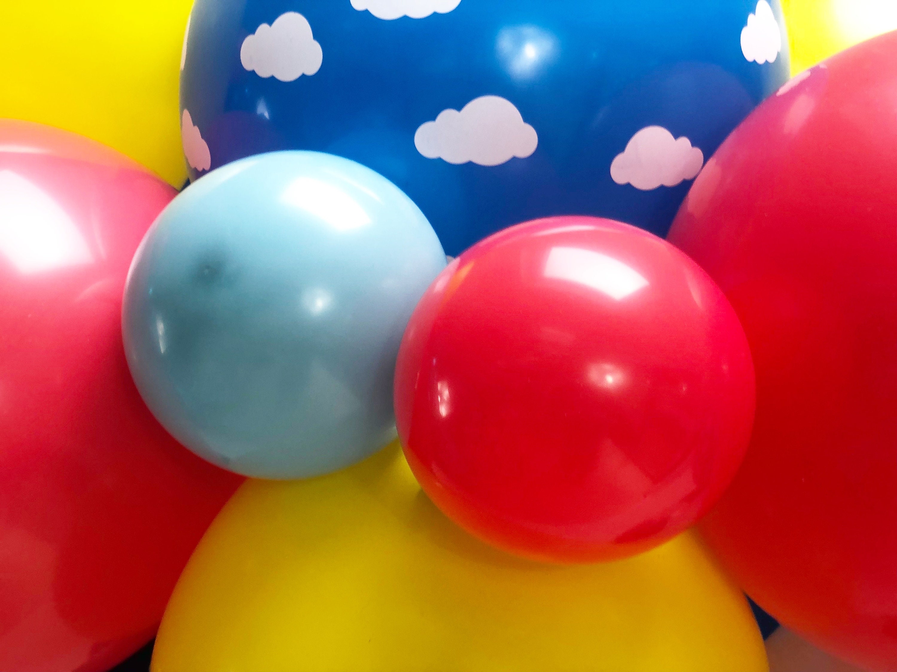 11in balloons: red, yellow, blue, cloud balloons, cow print balloons