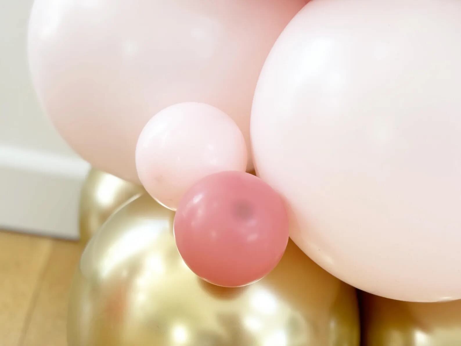 -10 x 5in balloons in rose, pastel pink, chrome gold
