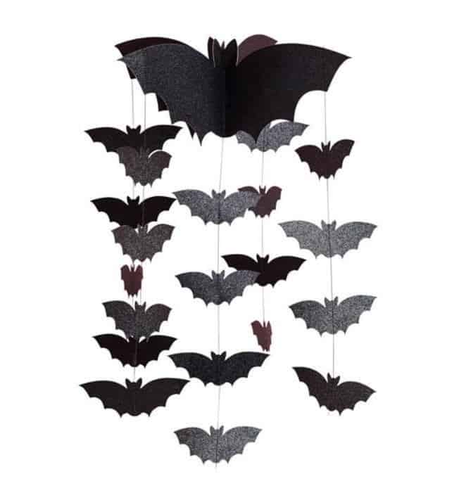 The mobile is made of card bats: 1 large 3D bat with lots of small glittery bats suspended from it’s wings…the perfect addition to your Halloween decorations.