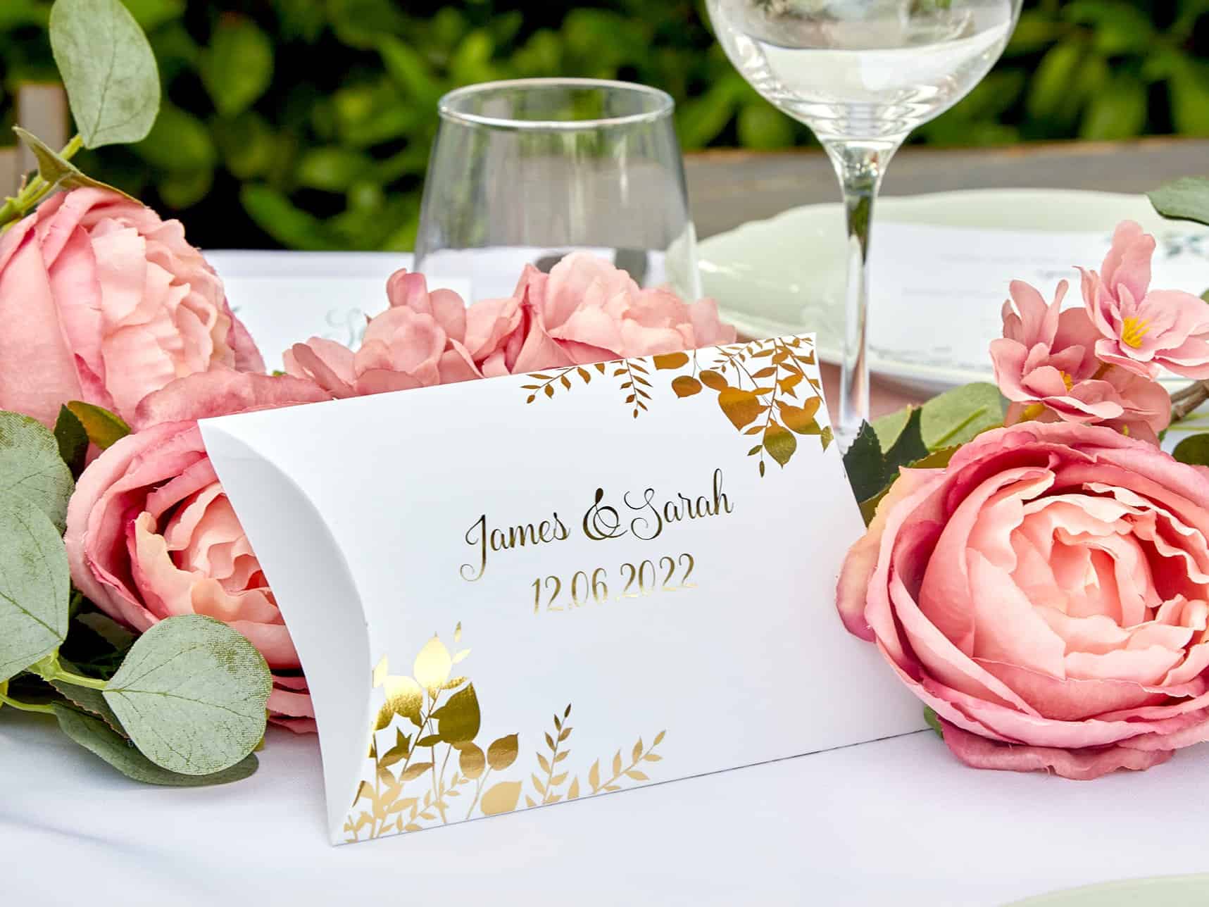 The place cards are available in 2 different styles, foiled gold leaves and with the name only, so you can pick which looks the best with the rest of your wedding table.